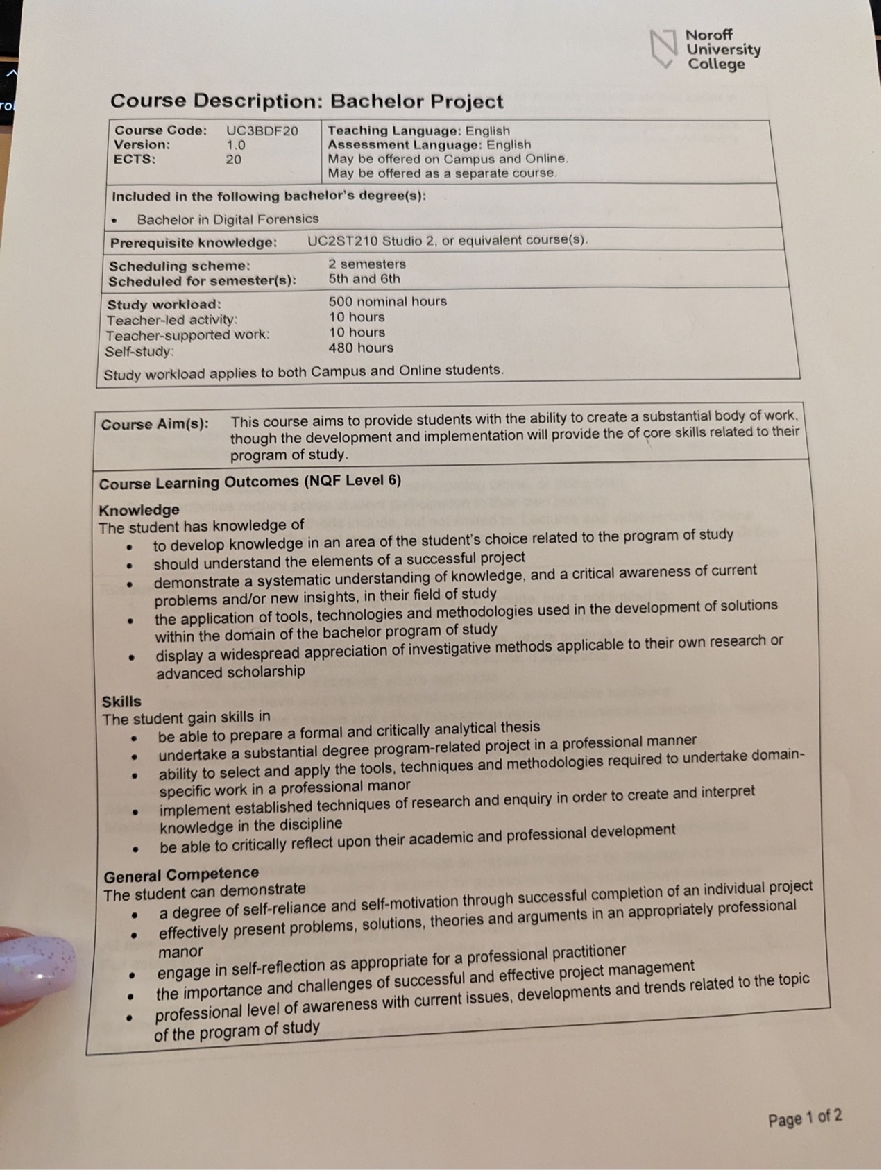 Course Title: Bachelor Project -