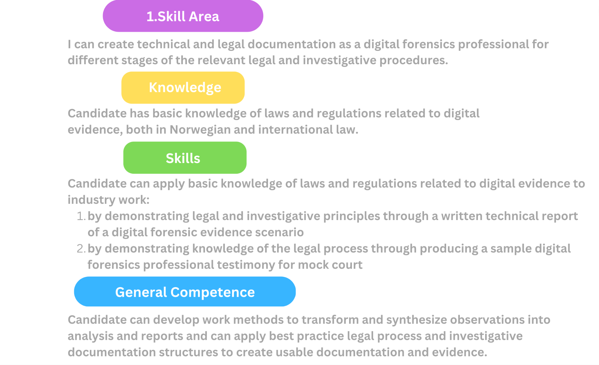 - Basic knowledge of laws and regulations related to digital evidence